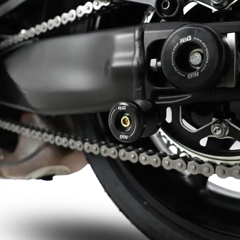 These cotton reels mount directly into the mounting points on the rear swingarm offering the best of both worlds in terms of crash protection and functionality with the ability to use R&G cotton reels, which offer excellent crash protection to those components located towards the rear as well as the ability to lift up the rear of the bike with a paddock stand for maintenance and tyre changes. Available in Black, Orange or White . Sold in Pairs.